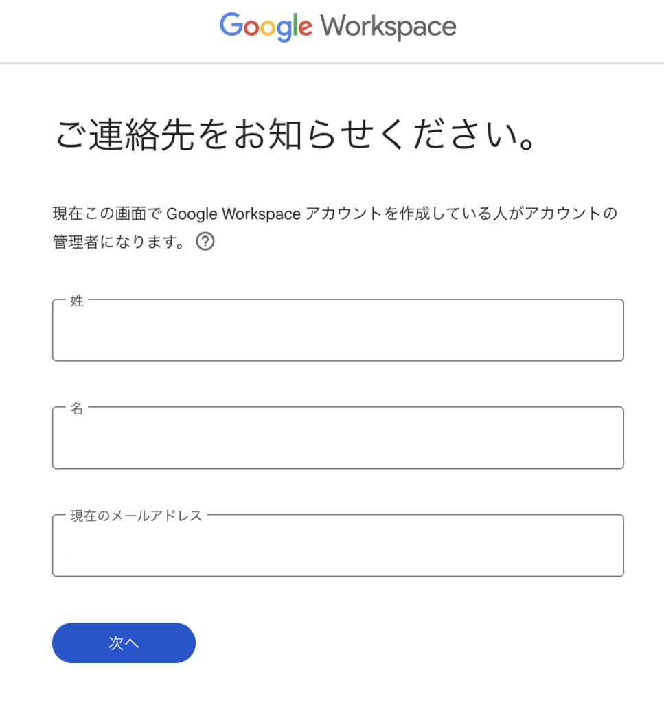 続いて、アカウントの管理者となるあなたの連絡先情報を入力します。